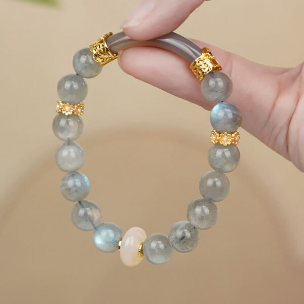 Labradorite Beads Bracelet is crafted with natural labradorite stones. known for their protective and healing qualities. The bracelet helps foster emotional balance. inner strength. and spiritual growth. Labradorite is believed to promote mental clarity and shield against negative energies. This bracelet offers powerful support for those seeking transformation. aligning the wearer with their highest potential.💕