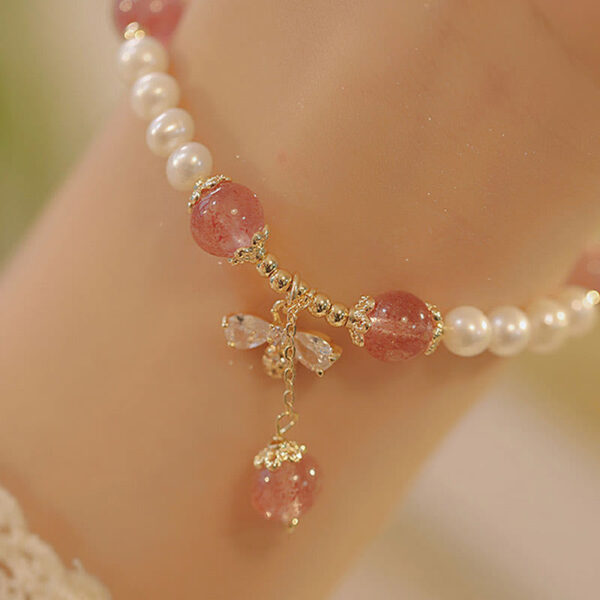 - Beads Size: Pearl 7.6-8mm. Strawberry Quartz 8mm