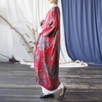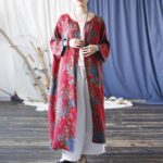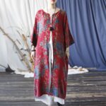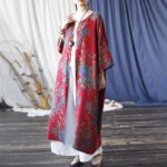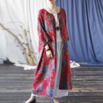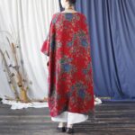 Be the first to review “Buddha Stones Red Blue Flowers Print Cotton Three Quarter Sleeve Open Front Jacket Coat”