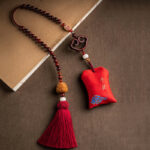 Be the first to review “Buddha Stones Tibetan Small Leaf Red Sandalwood Lotus Cinnabar Sachet Protection Tassel Car Hanging Decoration”